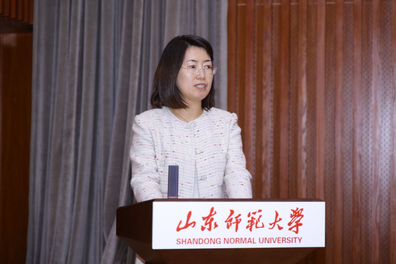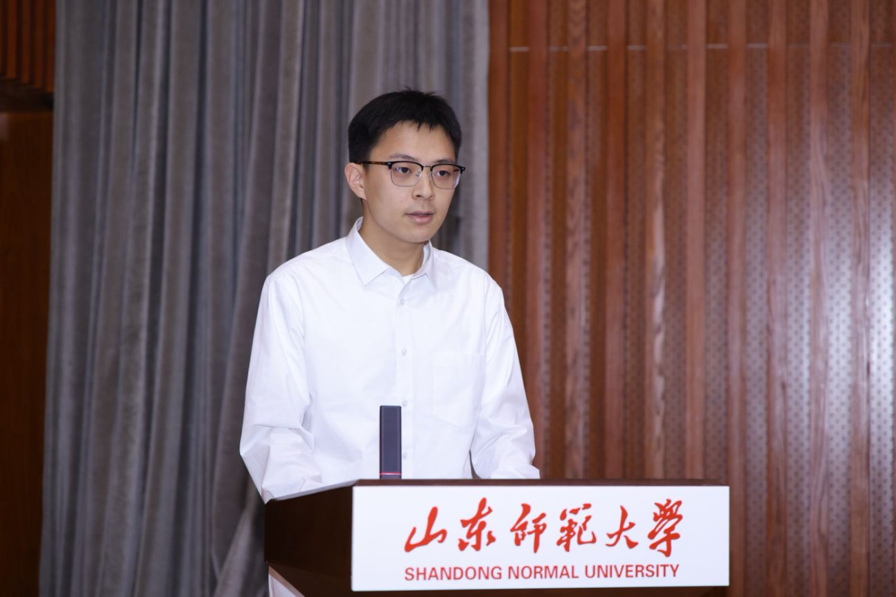 SQA-AD项目2023级学生李永涵代表参会学生发言,感谢教育部(中国)留学服务中心和学校提供的宝贵平台。他表示,将会带着中心带来的“光”、山师给予的“实”,继续稳步前行,成就最好的自己。