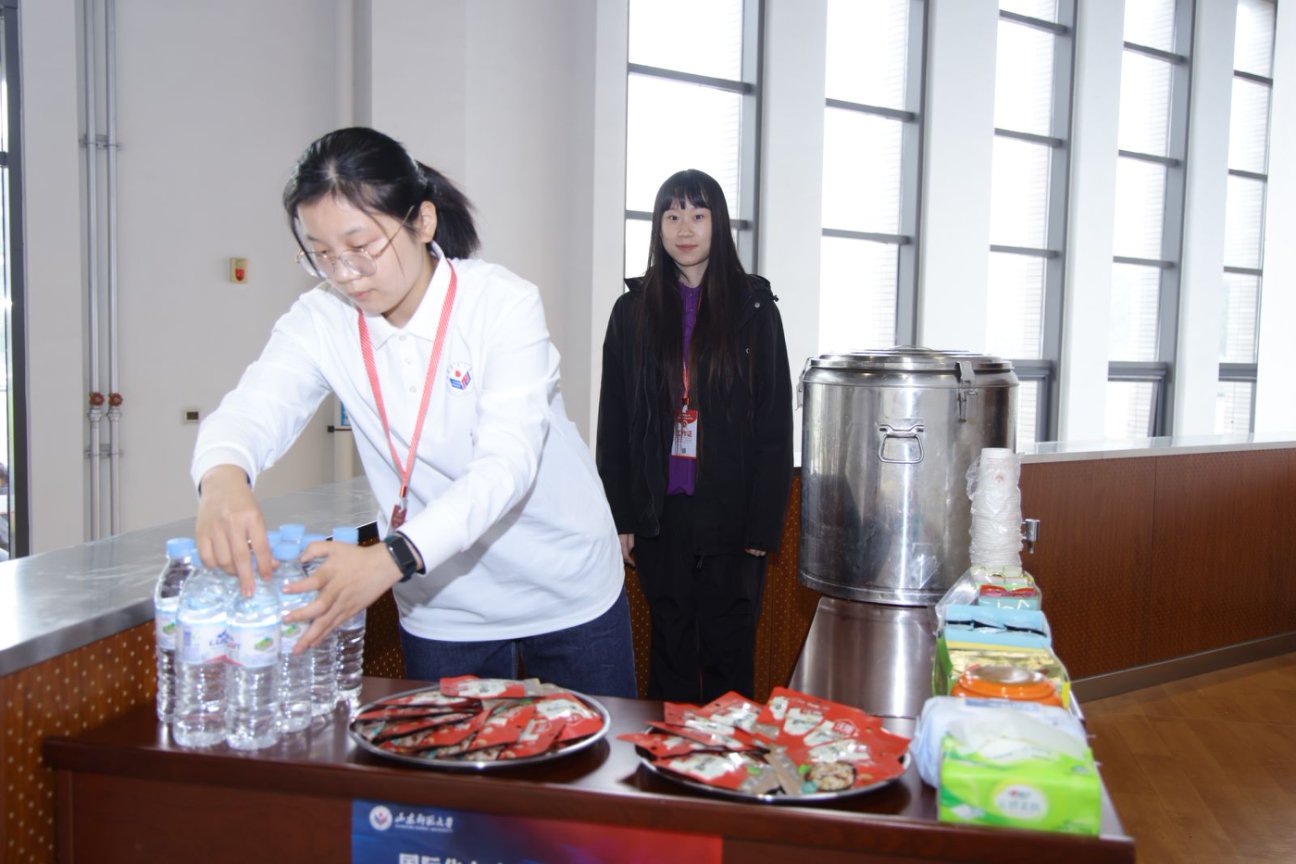 在交流间隙,茶歇服务组的志愿者不仅精心准备好茶点饮品,更用微笑服务,为校方代表和同学们送去一份及时的温暖与关怀,成为会场的能量“补给站”。