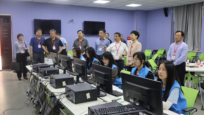 比赛期间,山东省教育厅副厅长孙晓筠莅临潍坊学院指导工作,我校副校长郑元杰、潍坊学院党委书记李东、教育厅教师工作处副处长刘依林参加活动。孙晓筠一行到复赛等候室、准备室、比赛室、监控室进行检查,观摩选手比赛,慰问评审专家及工作人员,先后听取了山东省高等学校师资培训中心常务副主任、继续教育与培训学部部长郭玉锋和潍坊学院教务处处长侯金奎关于省高校青年教师教学比赛组织与开展情况及复赛筹备与实施情况的汇报。在监控室,继续教育与培训学部部长助理孙永华向孙晓筠一行展示了比赛大数据、任务清单和比赛流程,比赛的组织实施、场地保障、技术支持和赛事服务等工作得到大家高度认可。
