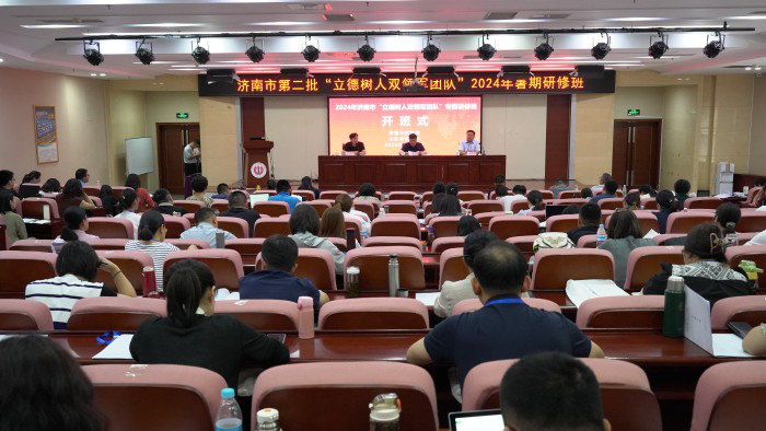 7月25日下午,济南市第二批“立德树人双领军团队”暑期研修班举行开班式。济南市教育局、我校继续教育与培训学部负责同志,100名济南市第二批“立德树人双领军团队”建设工程人选参加了开班活动。开班式由济南市教育局思想政治工作处处长王翔宇主持。