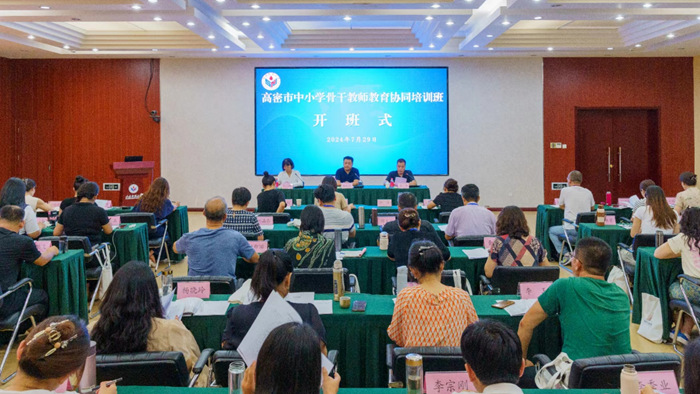 7月29日,高密市中小学骨干教师教育协同培训班在山东师范大学千佛山校区举行。学校继续教育与培训学部、高密市教育科学研究院相关负责同志参加开班,来自高密市的中小学骨干教师54人参加培训。