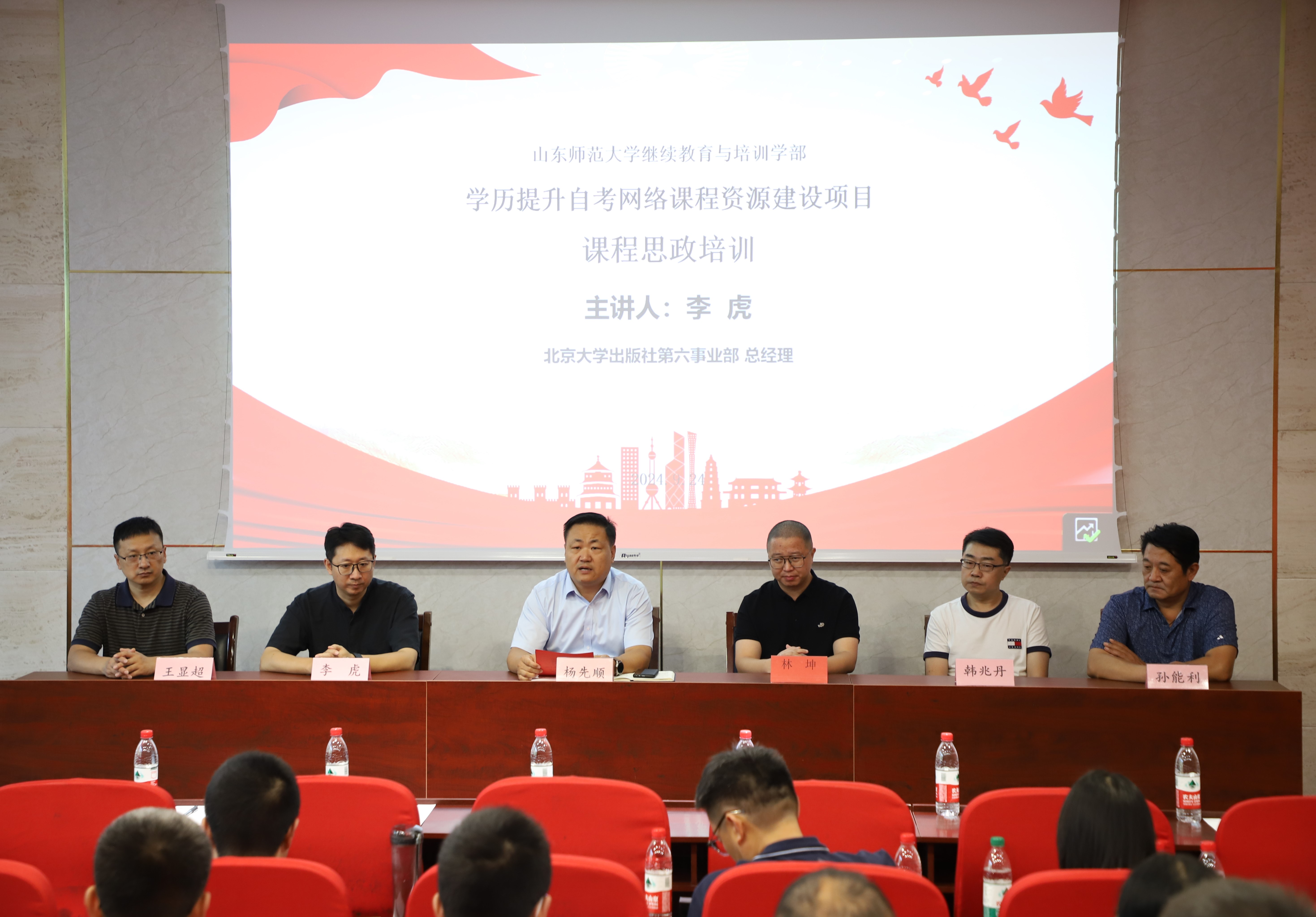 9月24日下午,学校高等教育自学考试网络课程资源建设项目课程思政培训会在千佛山校区3155报告厅举行。北京大学出版社、继教在线(北京)科技有限公司,我校继续教育与培训学部相关负责同志、承担自学考试网络课程资源建设项目的教师50余人参加培训。