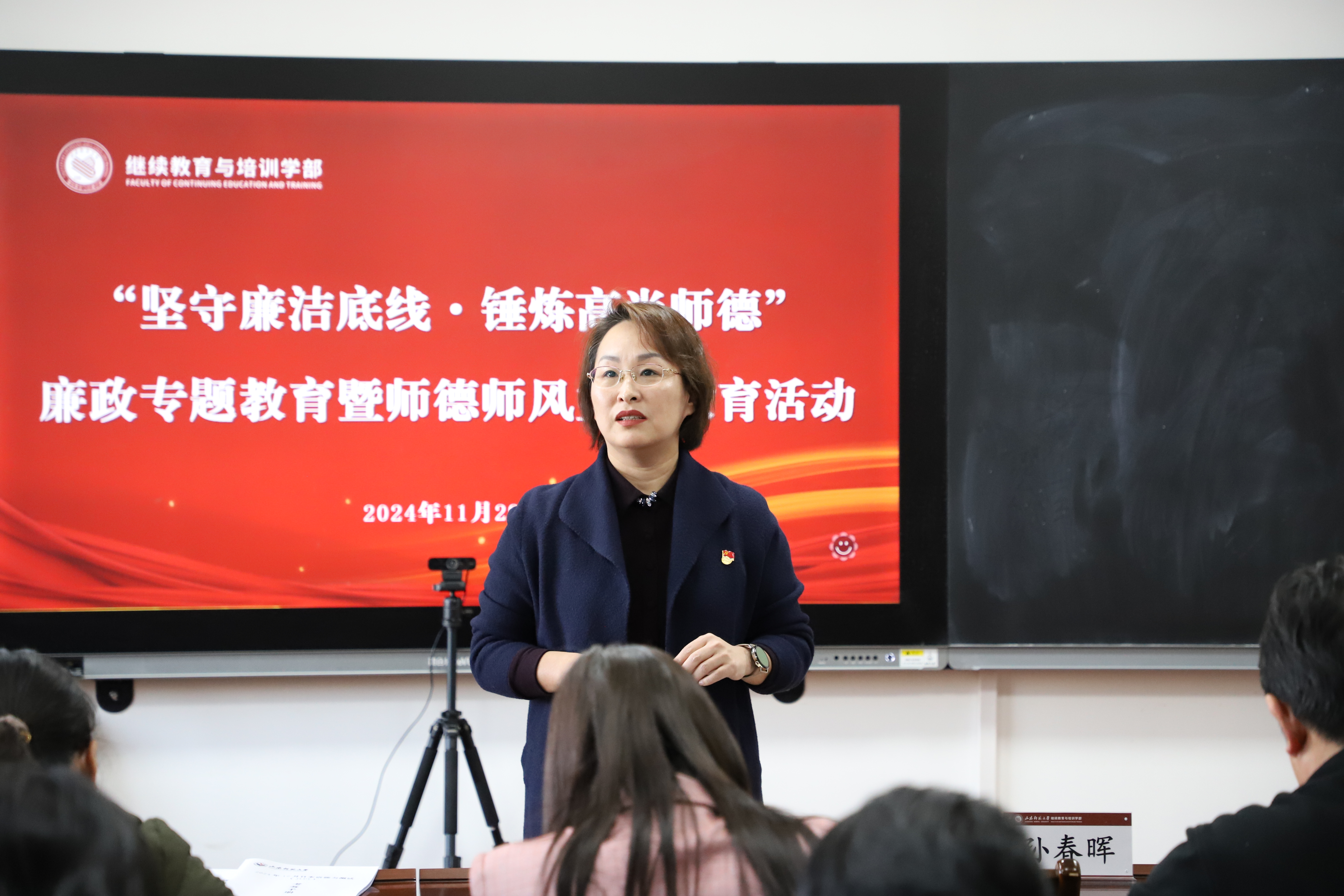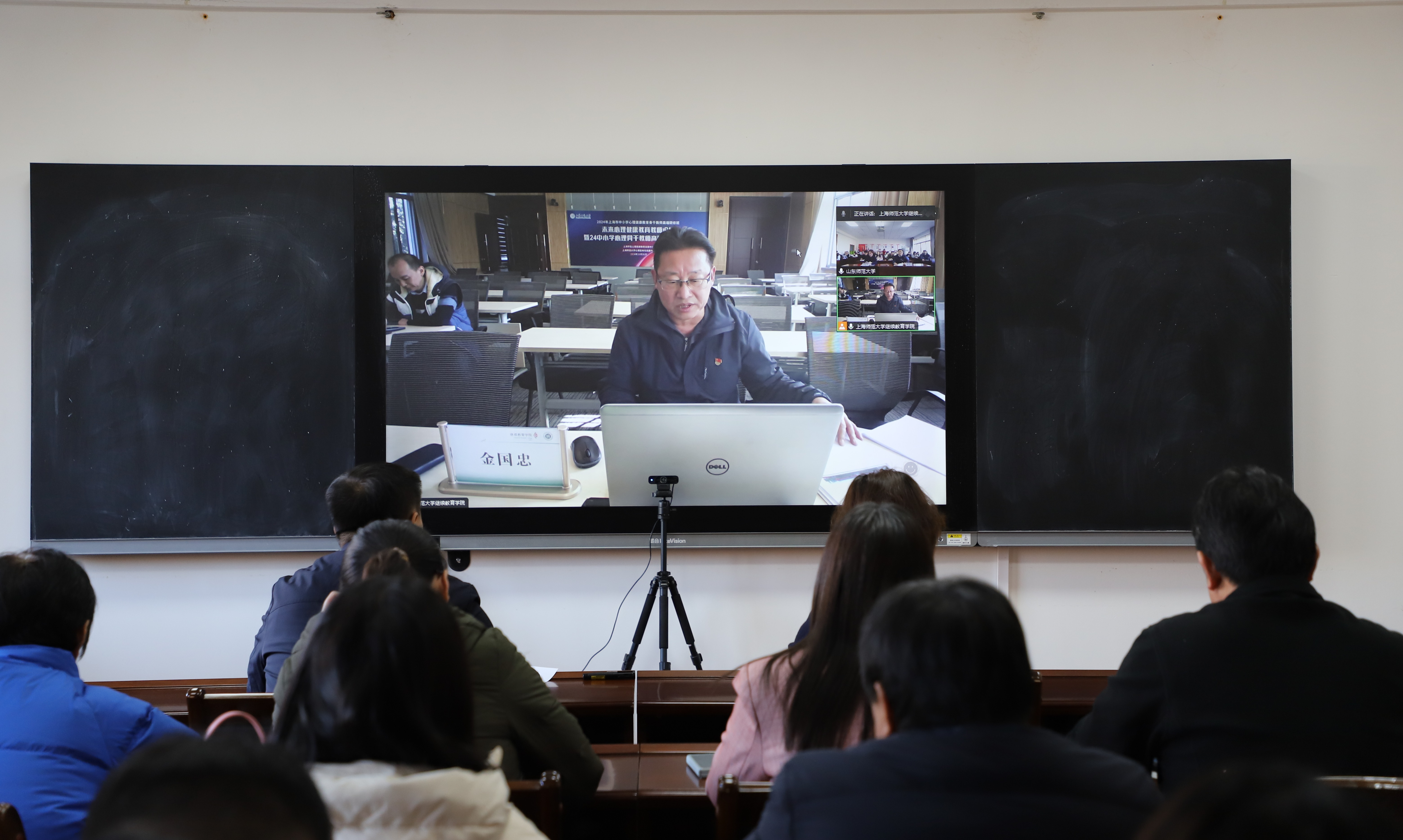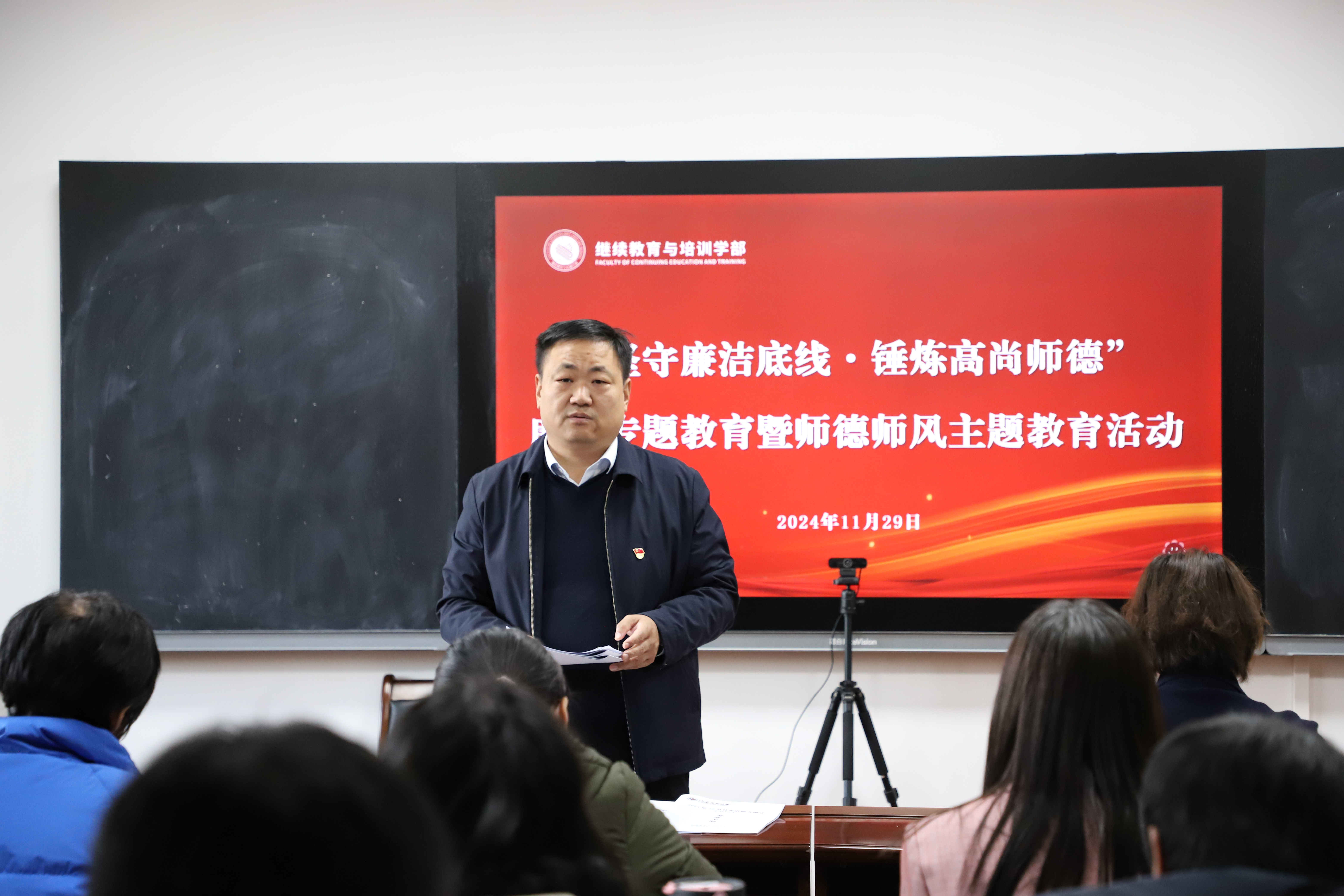 11月29日下午,学部“坚守廉洁底线·锤炼高尚师德”廉政专题教育暨师德师风主题教育活动在千佛山校区教学三楼3447教室举行。上海师范大学继续教育学院党总支书记金国忠受邀线上出席活动并作廉政建设专题报告。学部领导班子成员、各部(室、中心)负责同志及部分业务骨干参加会议。会议由学部党委书记杨先顺主持。