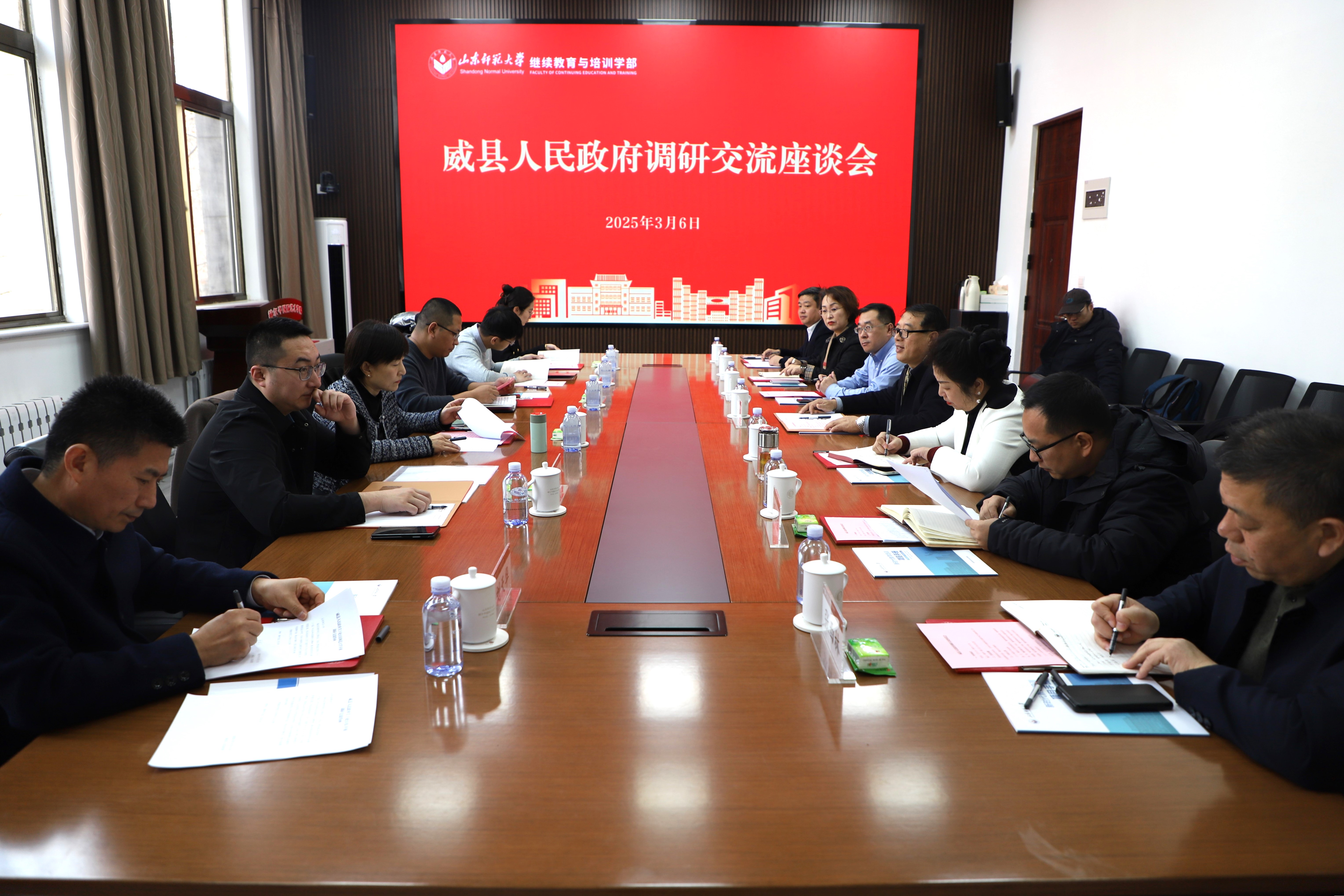 3月6日上午,教育部驻威县挂职副县长高云、挂职干部徐阳、李勖晟、宋瑞涛一行来我校调研交流。省教育厅民办教育与继续教育处二级调研员刘天华,山东师范大学副校长张茂聪出席调研活动。