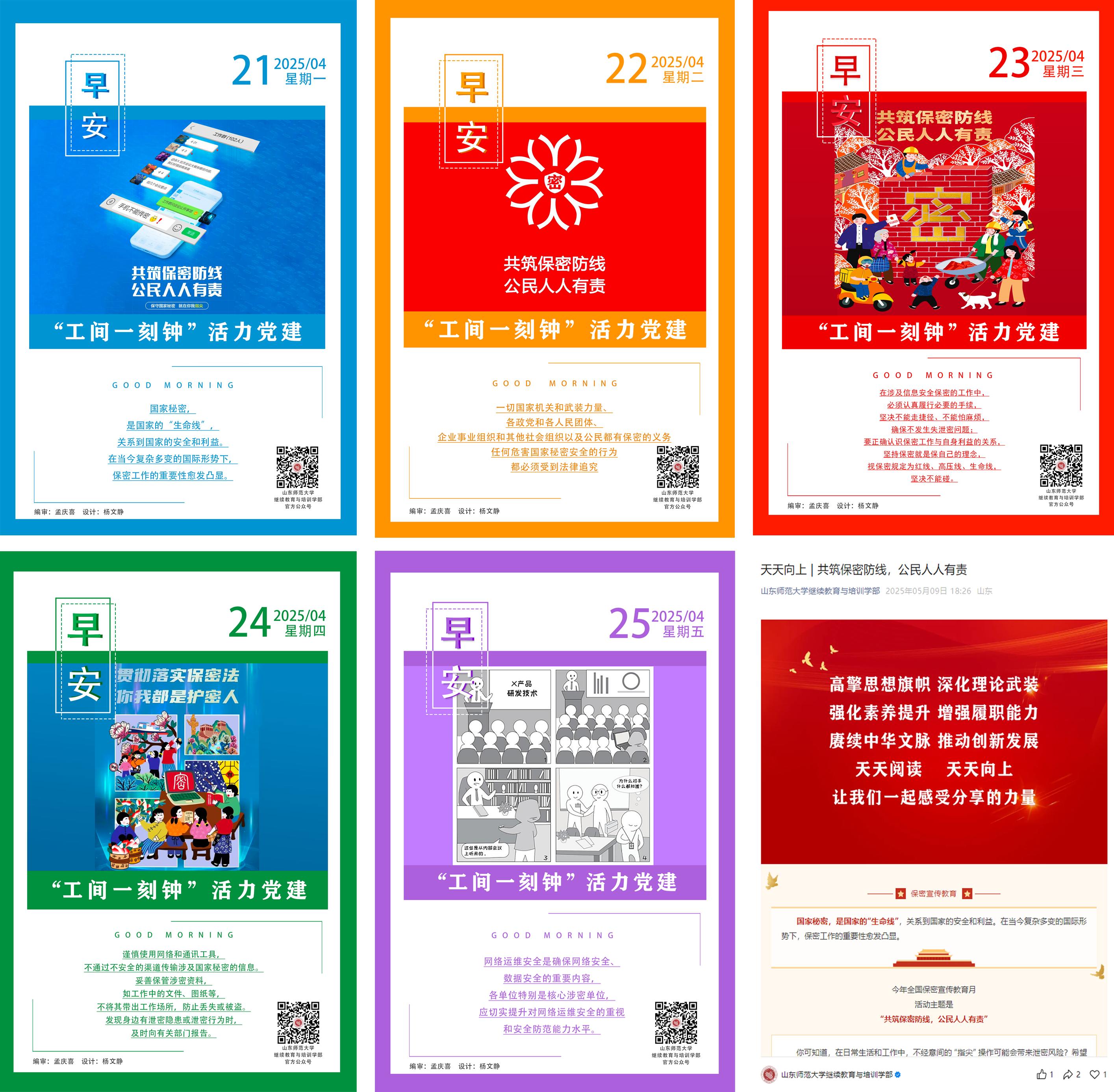 据悉,4月中旬至今,学部党委深入开展保密学习教育活动,通过学部微党课、党支部“三会一课”、电子屏投放保密宣传标语、线上推送学习文章与教育海报、现场教学、参加保密教育线上培训等形式,多角度、全方面开展保密知识学习,营造人人“学保密、懂保密、善保密”的良好氛围。下一步,学部将以此次保密教育学习为契机,持续开展保密宣传教育系列活动,扩大保密教育覆盖面,推动保密工作与学部业务工作深度融合,为学校高质量发展提供坚实安全保障。(摄影:各党支部)