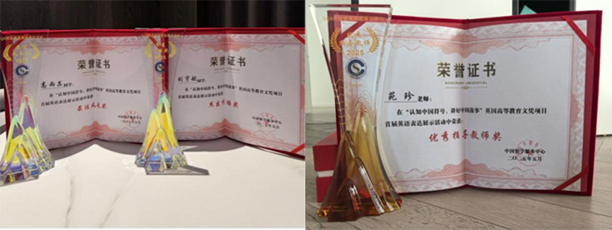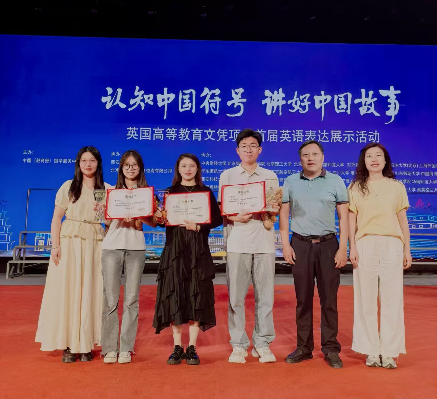 5月26日,由教育部留学服务中心主办的“认知中国符号,讲好中国故事”英国高等教育文凭项目首届英语表达展示活动总决赛在西安落下帷幕。我校两名选手全部杀入决赛,在百名学生中脱颖而出,斩获“最佳风采奖”和“杰出传播奖”两项殊荣,指导教师苑珍荣获“优秀指导教师奖”。