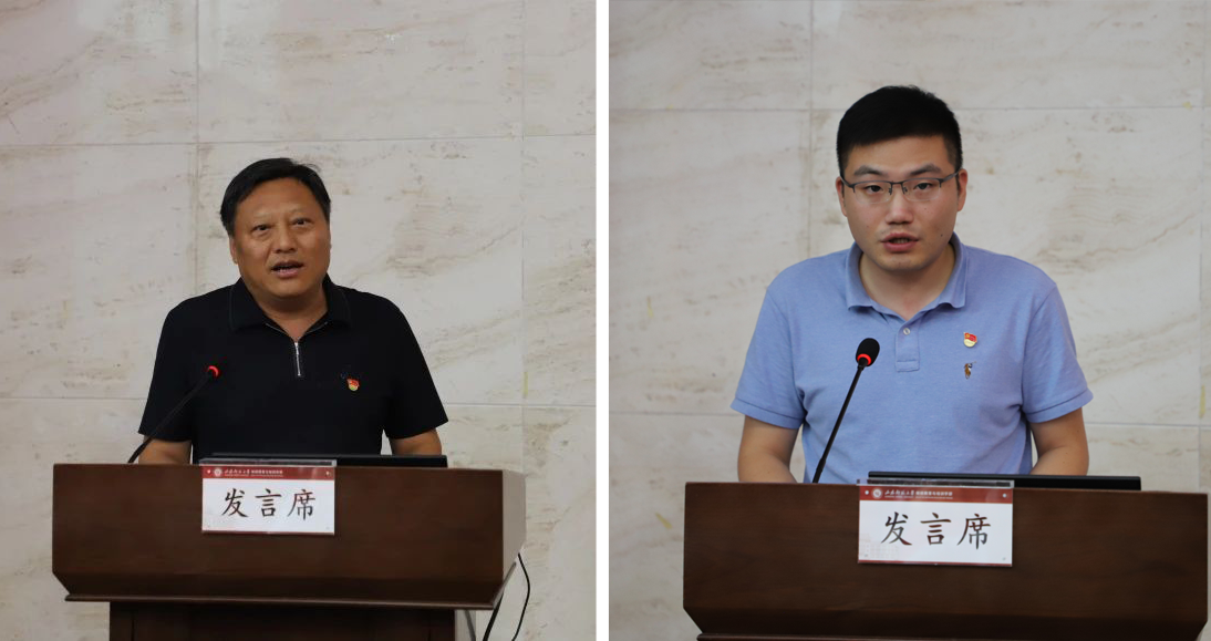 出国留学培训基地办公室负责人韩道广、教育培训中心主管杨兴烨作代表发言,汇报了部门发展成绩、目前问题及下步举措。