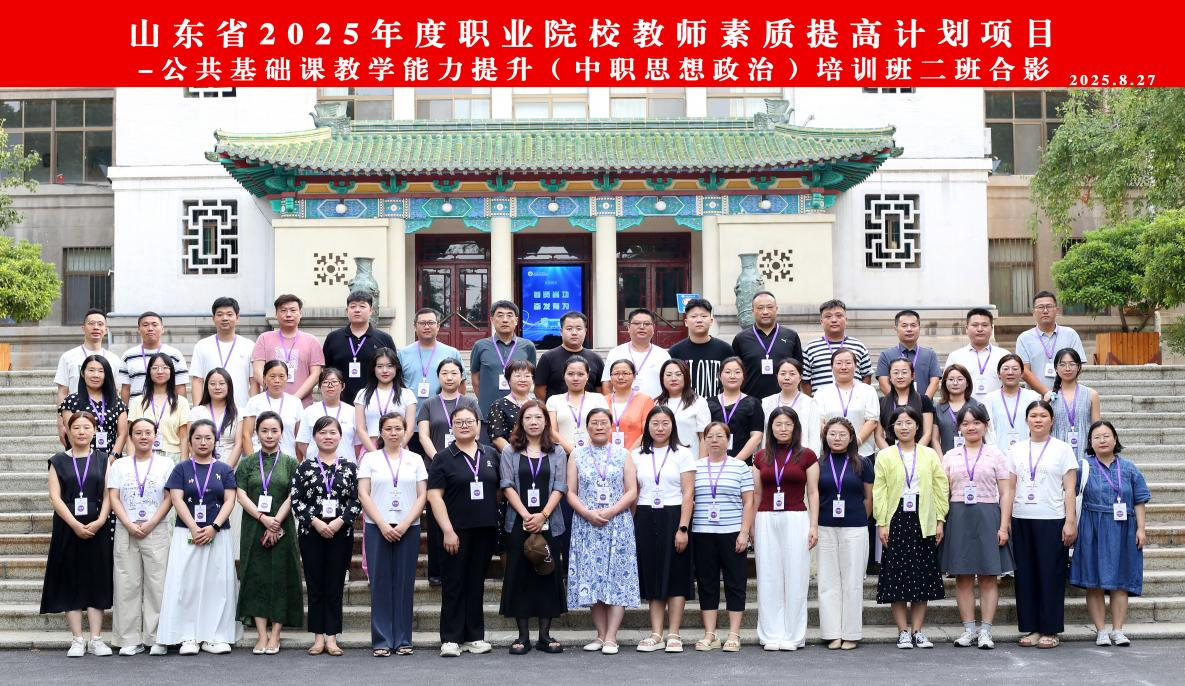 8月25日-31日,山东省2025年度职业院校教师素质提高计划项目——公共基础课教学能力提升(高职、中职思想政治)培训班在我校千佛山校区顺利举办。学校继续教育与培训学部有关负责同志参加相关活动,来自全省职业院校(高职、中职)的150位思想政治课教师参加培训。
