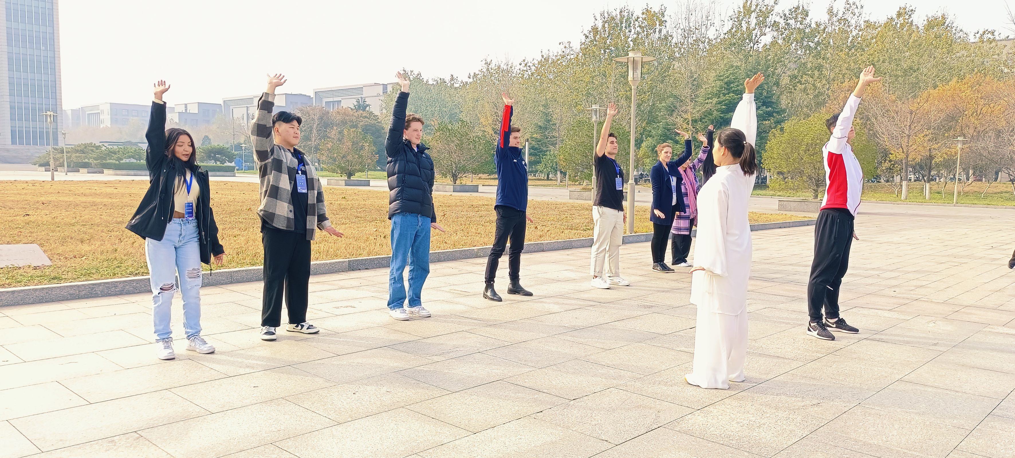 交流期间,学校出国留学培训基地学生张相如首先与大家分享了她在基地的校园学习生活;随后,基地学生代表进行了古筝、书法、太极拳等中国传统文化项目展演,来访学生展示了欢快热情的特色舞蹈。双方师生主动融入、积极互动,沉浸式体验了对方的文化,现场气氛十分活跃。