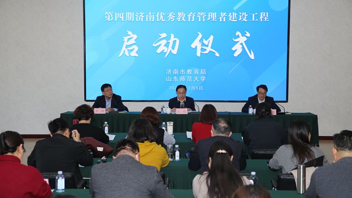 12月5日,由济南市教育局主办、山东师范大学承办的“第四期济南优秀教育管理者建设工程”正式启动。济南市委教育工委常务副书记,济南市教育局党组书记、局长王纮,山东师范大学党委常委、副校长张茂聪,济南市委教育工委副书记,市教育局党组成员、副局长方辉出席启动仪式。济南市教育局相关处室负责人,学校相关部门的负责同志,第四期济南优秀教育管理者建设工程55位成员参加仪式。启动仪式由方辉主持。