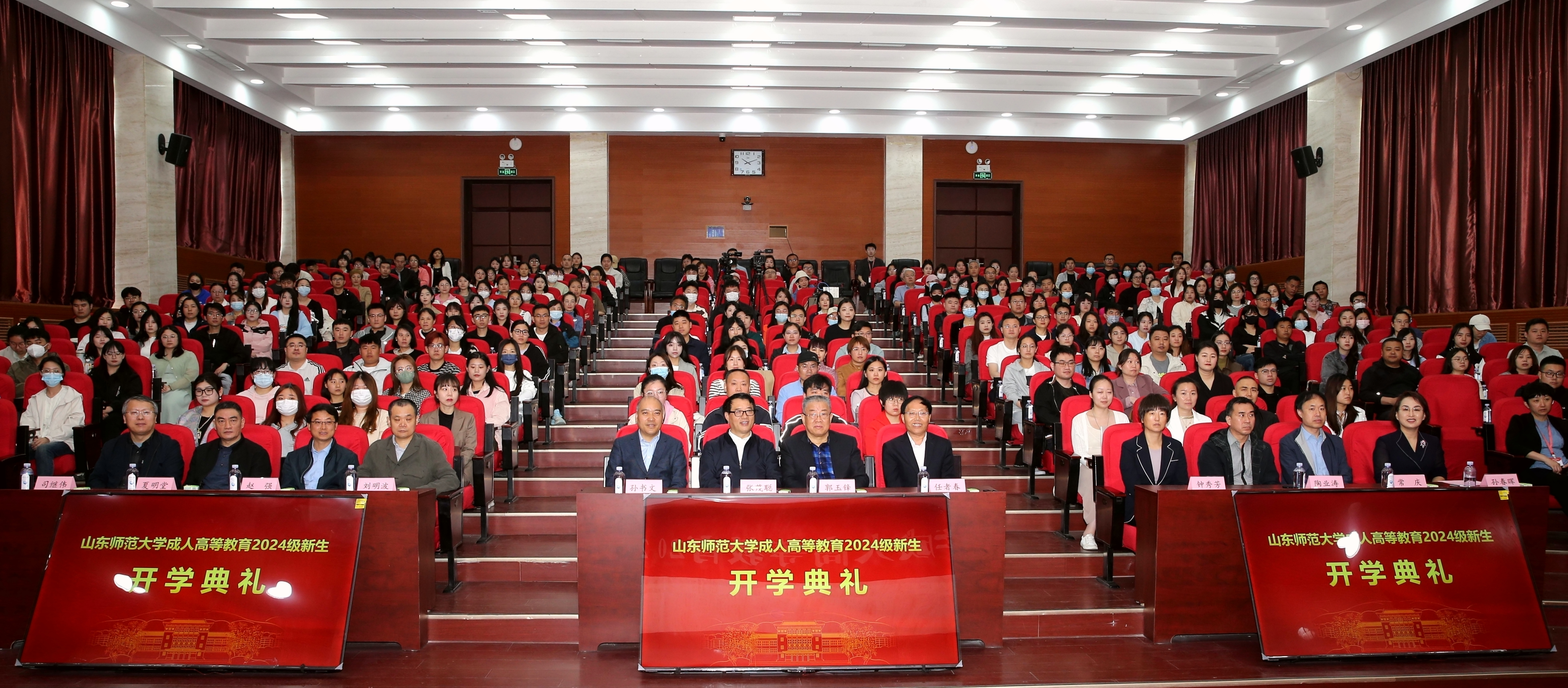 4月13日,山东师范大学成人高等教育2024级新生开学典礼在千佛山校区教学三楼报告厅举行,并在线上同步云直播。学校党委常委、副校长张茂聪出席活动并讲话,校内设专业的教学单位负责同志、继续教育与培训学部领导班子成员、相关部室的负责人和工作人员,以及14地市的21个校外教学点负责同志和14696名新生在现场和线上参加活动。
