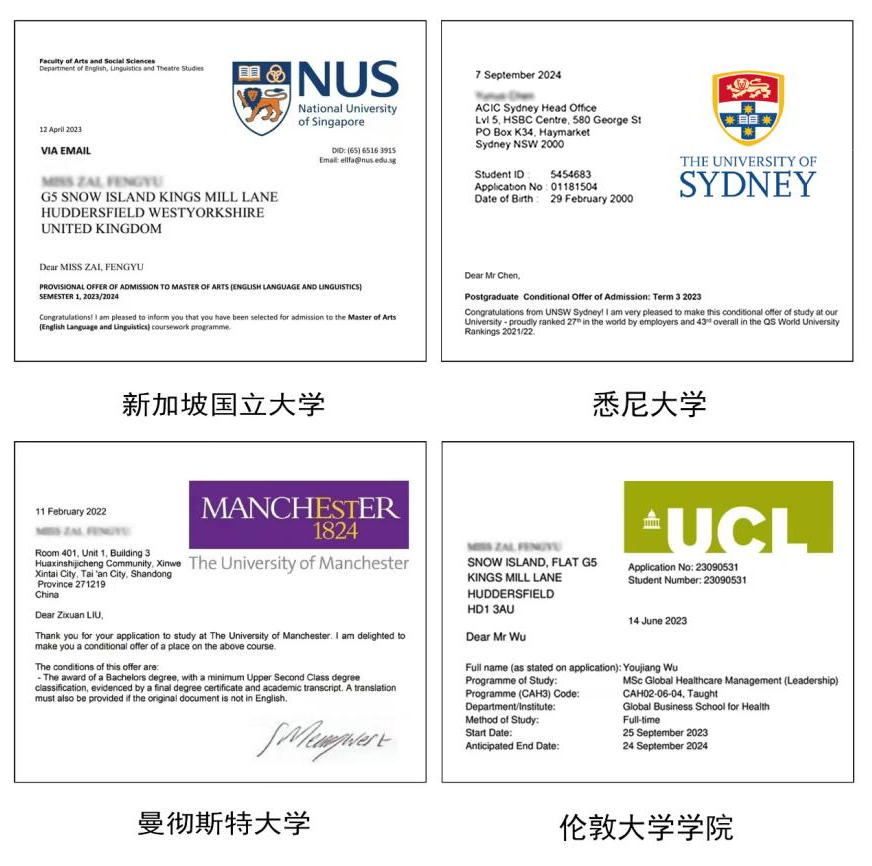 录取院校有新加坡国立大学、伦敦大学学院、墨尔本大学、新南威尔士大学、悉尼大学、澳洲国立大学、爱丁堡大学、曼彻斯特大学、香港科技大学、布里斯托大学、奥克兰大学、利兹大学、杜伦大学、南安普顿大学等2025 QS世界大学排名前100的院校。